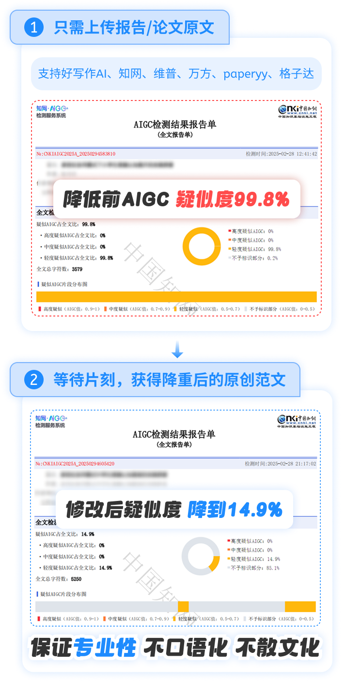 全新升级!适配知网/维普最新AIGC(知网2.13严苛版,维普2.26严苛版),深度优化文本结构,减少AI生成痕迹。